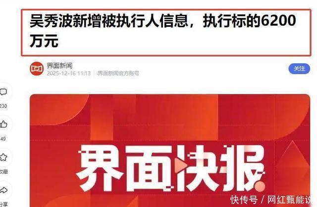 2025年12月,法院对吴秀波执行了6200万的财产,这已经是半个月内的第二次,他和妻子何震亚还被前合作方起诉到法庭,官司一直没结束,这些事情加起来,把他剩下的商业资源全部锁死,想要翻身基本没有可能。
